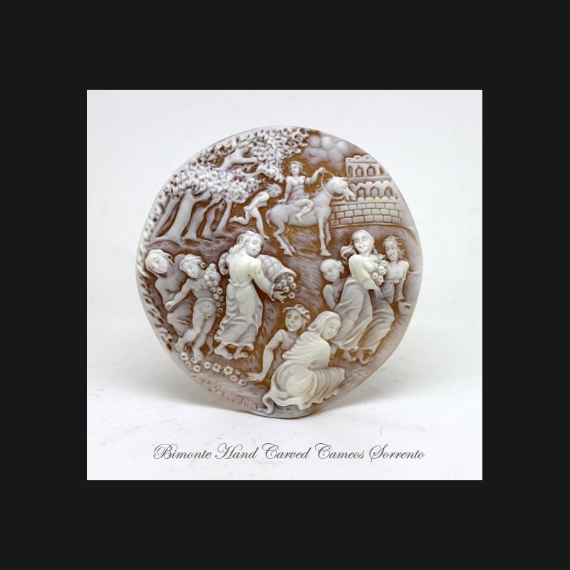 In this cameo, the carver shows You the goddess Cerere with the CORNUCOPIA ( horne of planty) and the 3 graces to the right.