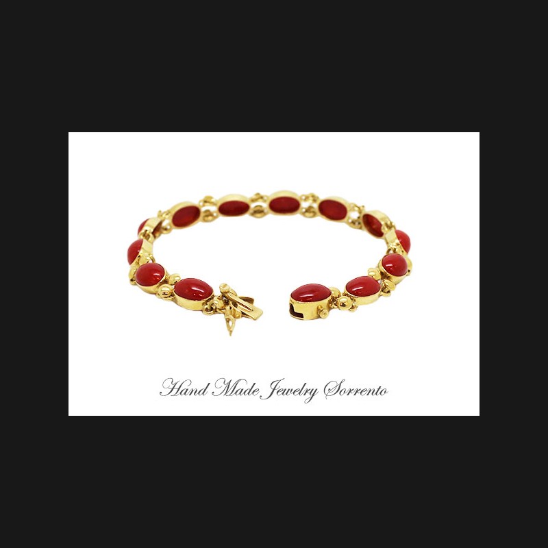 Genuine , first quality, red coral stone bracelet set in solid gold 18 ct