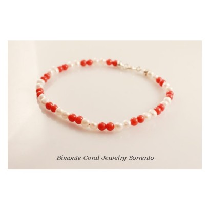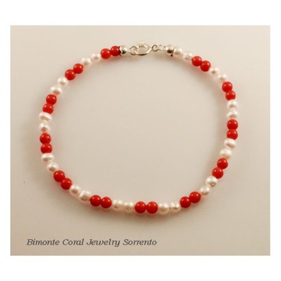 Genuine red coral stone and fresh water pearls bracelet set in sterling silver.