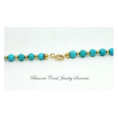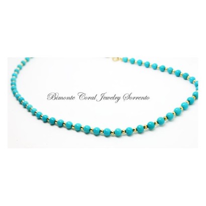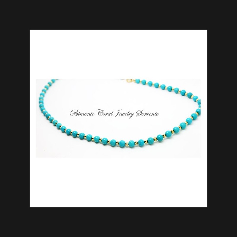 "Cielo" turquoise stone and 18 ct gold necklace is designed and created by Bimonte Sorrento