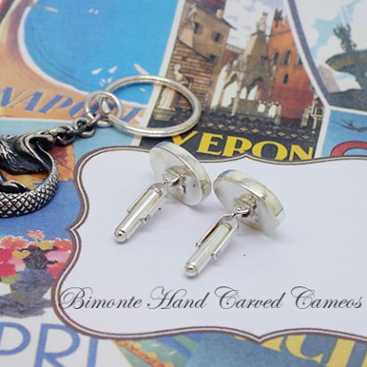 Genuine hand carved shell cameo cufflinks set in 925 sterling silver.