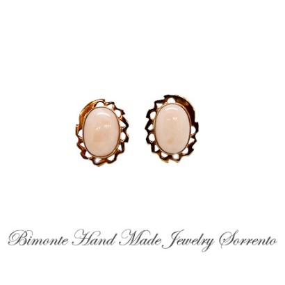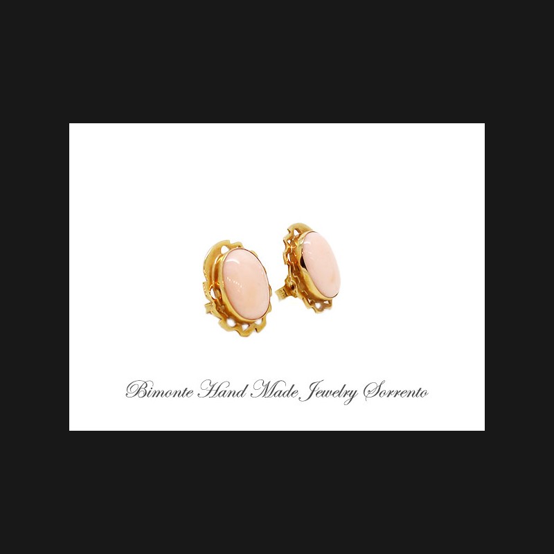 Genuine hand made pink coral stone earrings set in solid gold 18 ct