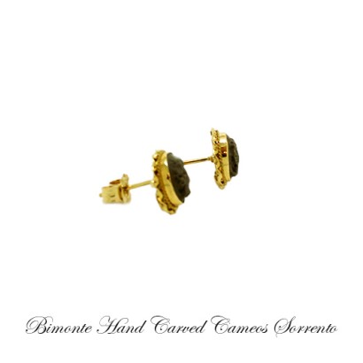 Genuine hand carved cameo earrings set in solid gold 18 ct