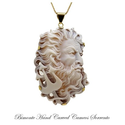 "Poseidone" Cameo necklace is designed and created by Bimonte Sorrento