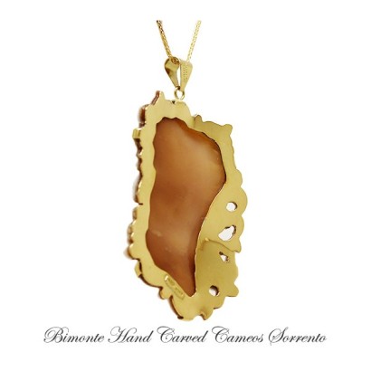 Genuine hand carved shell cameo pendant set in solid gold 18 ct and solid gold 18 ct chain