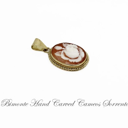 Genuine hand carved shell cameo pendant set in solid gold 18 ct