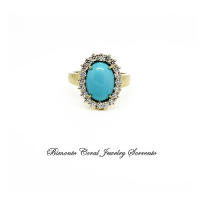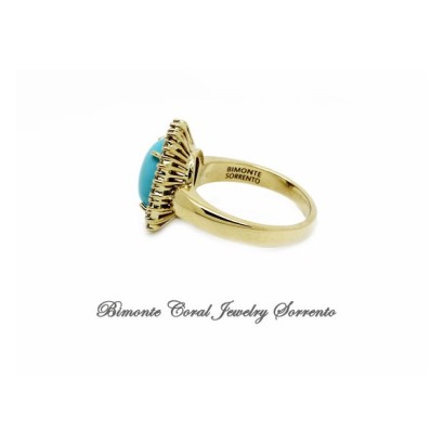 Genuine hand made Sleeping Beauty Turquoise stone and Diamonds ring set in solid gold 18 ct
