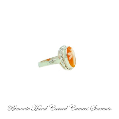 Genuine hand carved shell cameo ring set in sterling silver