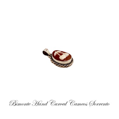 Genuine hand carved shell cameo pendant set in sterling silver