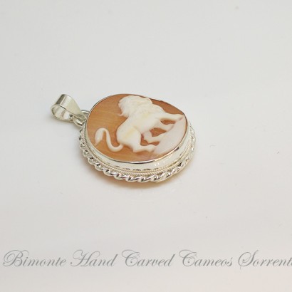 Genuine hand carved shell cameo pendant set in sterling silver