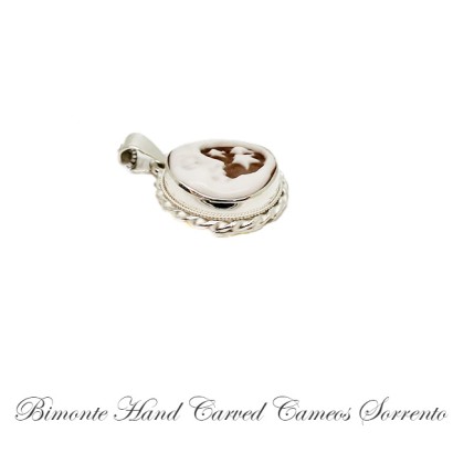 Genuine hand carved shell cameo pendant set in sterling silver and sterling silver chain