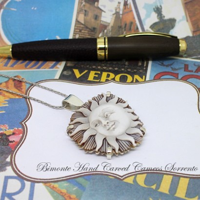 "Sole" Cameo Necklace is designed and created by Bimonte Sorrento