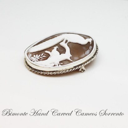 Genuine hand carved shell cameo brooch and pendant set in sterling silver